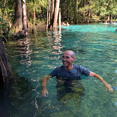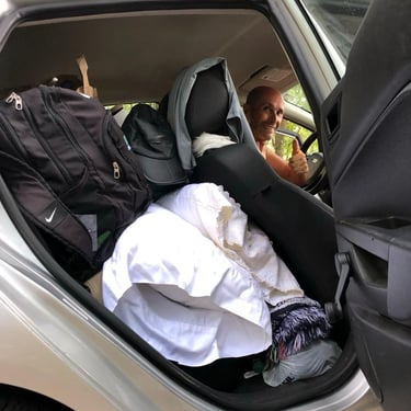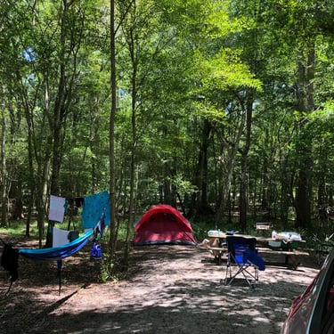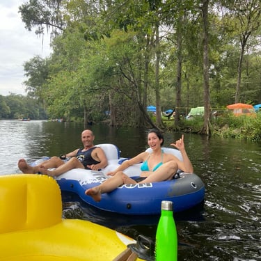 My American Family graciously let us borrow their camping gear, and we had way more than we needed. We went from sleeping on the floor to..... sleeping in cots! With real pillows and comfy blankets! We packed up my tiny car to the brim and drove to Ginnie Springs, in west Florida.