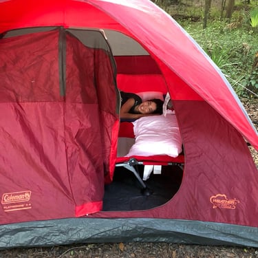 It wasn't exactly the forest or mountaintop I had imagined, but it wasn't a bad idea at all. It was still incredibly exciting! Sleeping on the floor like the homo sapiens hidden in a tent that looked like a cave?! And we get to use a flashlight?! Say less!